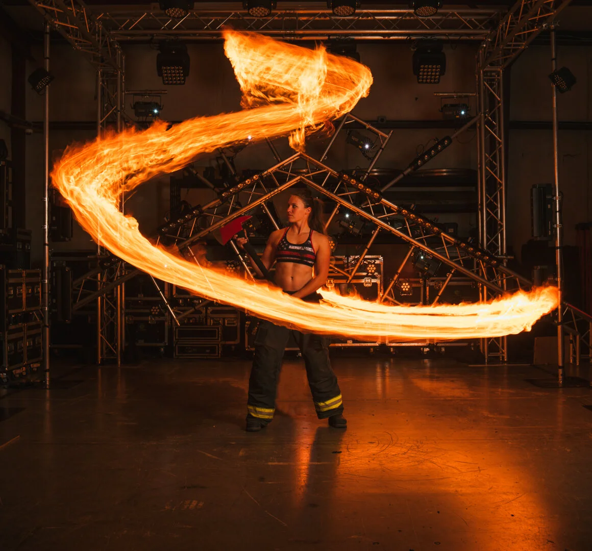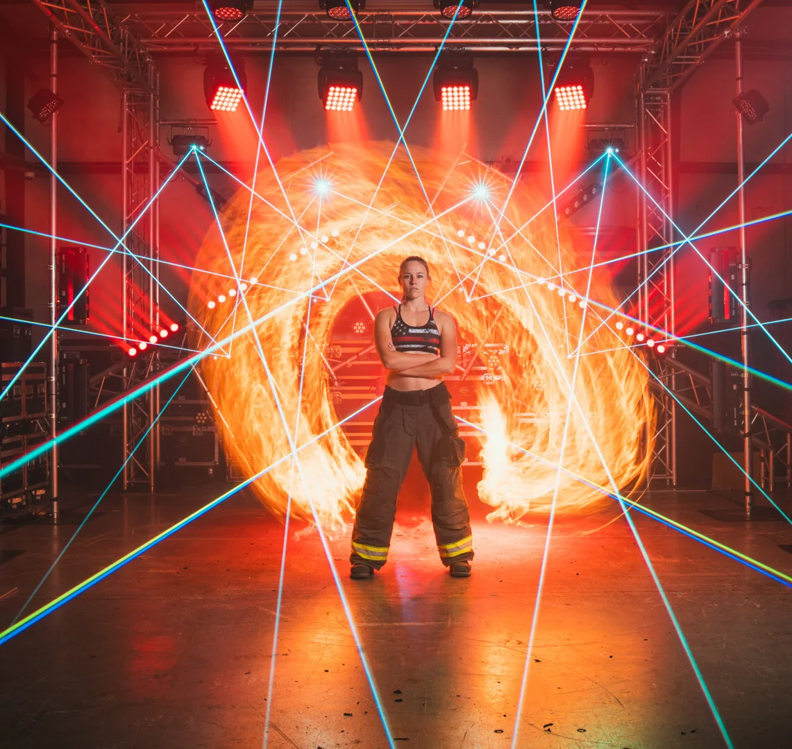 We’ve worked with Colorado Springs based light painter Russell Klimas too many times to count. It’s gotten to a point that we consider him an “Artist in Residence” at the Lighting Lab; a high honor for sure. Every time we think we’ve seen everything he has to offer, he approaches us with another technique he wants to try in the Lighting Lab. This time it was light painting with fire. Klimas, being the veteran light painter he is, has done previous work with fire in other settings. Enthralled by the idea, we immediately wanted to participate. Because we would be dealing with actual fire, Klimas wanted to take all of the necessary precautions to ensure the Lighting Lab was used in a safe manner. This included bringing in a model who has experience with fire and probably more than many of us would want to have. When dealing with fire, it’s always good to have a firefighter on scene.